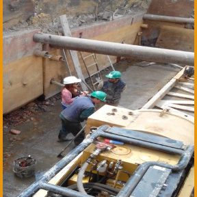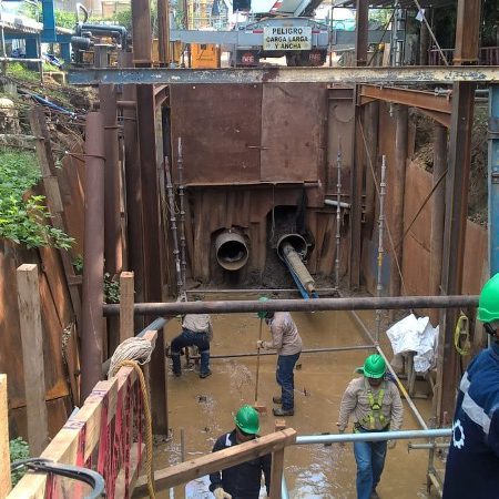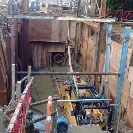 Nuestros sistemas de perforación horizontal extracción por medio de augers reemplazados por camisas metálicas o tubos en concreto desde un pozo de lanzamiento hasta un pozo de salida con entibados que permiten la construcción de grandes colectores en zonas urbanas hasta profundidades de 11 metros, empleando sistemas de entibado metálico que garantizan la estabilidad de los suelos y paredes de excavación sin afectar las redes de servicios públicos existentes.